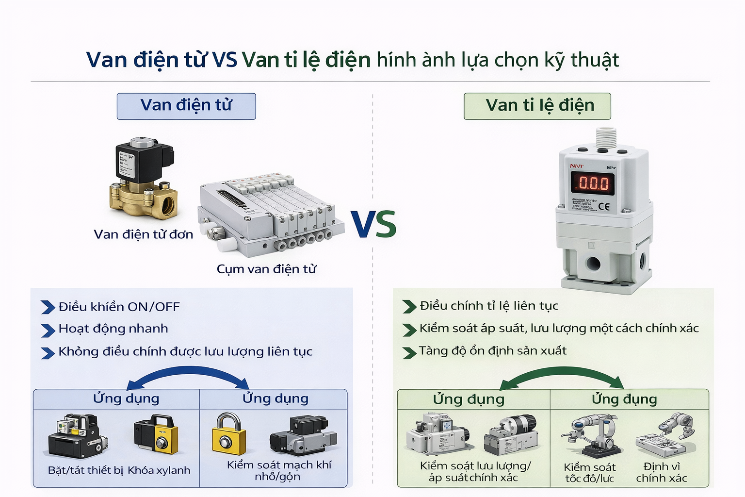 | Tiêu chí | Van điện từ | Van tỷ lệ điện |